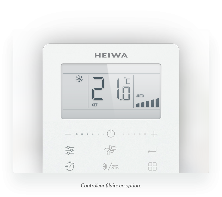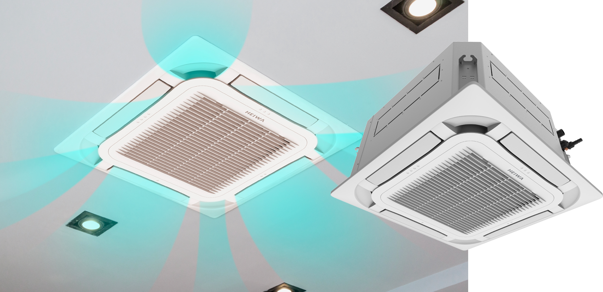 Les cassettes Heiwa PRO 2 proposent 11 vitesses de ventilation différentes. Lors de l’installation il est possible de sélectionner la ventilation en fonction de la hauteur du plafond afin de garantir une distance d’alimentation en air confortable.